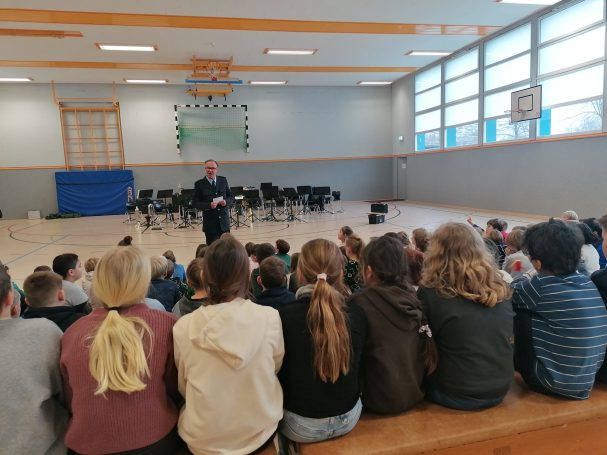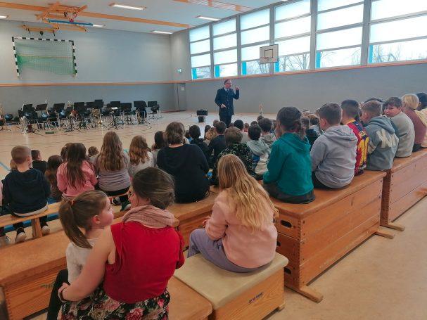 Eine Sporthalle voller gespannter Gesichter, neugieriger Ohren und fröhlichem Lachen: Ein vom Grenzmuseum Deutsche Einheit Bad Bodenteich organisiertes Konzert des Bundespolizei-Orchesters Hannover wurde für die Schülerinnen und Schüler der Auetal-Grundschule Bad Bodenteich zu einem besonderen Erlebnis. In einer Besetzung mit 22 Musikerinnen und Musikern verwandelte das Orchester die Sporthalle in einen Konzertsaal. Unter Leitung des Dirigenten präsentierten die Instrumentalisten ein abwechslungsreiches Programm, das speziell auf das junge Publikum abgestimmt war. Charmant und mit viel Witz führte ein Polizeibeamter als Moderator durch das Konzert. Mit lustigen Sprüchen, kleinen Zaubereien und kindgerechten Erklärungen brachte er den Schulkindern die Welt der unterschiedlichen „Musikgeräte“, wie er die Instrumente augenzwinkernd nannte, näher. Dabei blieb es nicht beim Zuhören: Die Schülerinnen und Schüler wurden aktiv eingebunden, durften Rhythmen klatschen, Melodien und Unterscheidungen erraten und sogar selbst musikalisch mitwirken.